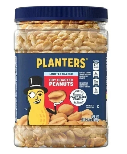 PLANTERS Lightly Salted Dry Roasted Peanuts, Party Snacks, Plant-Based Protein,