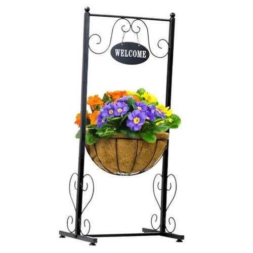 Welcome Planter Basket Stand with Coco Liner, Stylish Flower, Plant, and