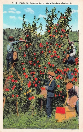 Wenatchee WA Washington Apple Orchard Farm Grove Picking Vtg Postcard A24