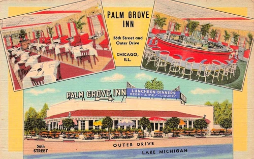 Palm Grove Inn Chicago IL Restaurant Bar Lake Michigan Vtg Postcard H26