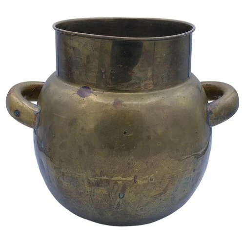 Vintage Brass Planter Water Pot Vessel Handmade Handles Patina Verdigris 12"