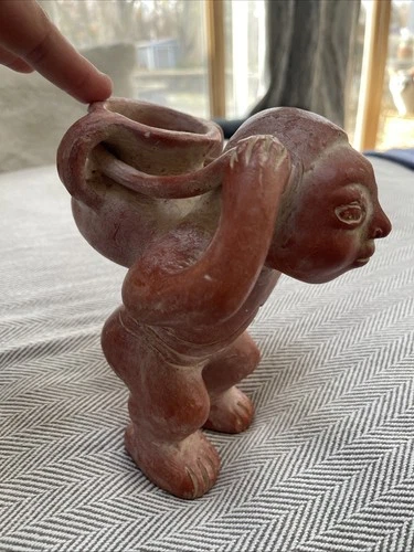 VTG Aztec Mayan Mexican Folk Art Pottery Clay Figure Vase Pot Planter Sculpture