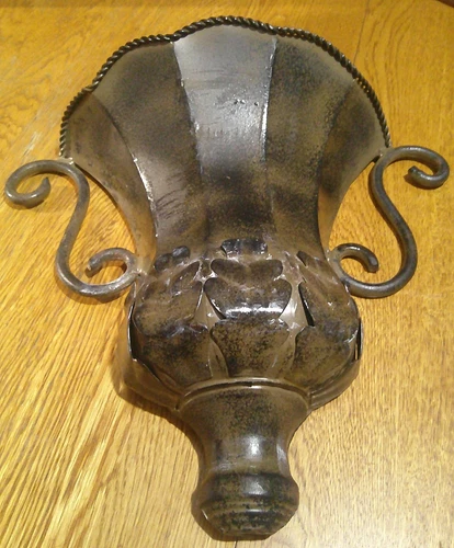 Metal Wall Pocket Planter Vtg Ornate Scrolled 10x12x4"Distressed Green/Black 293