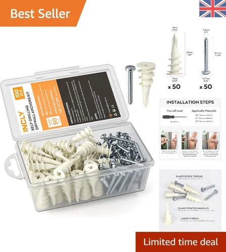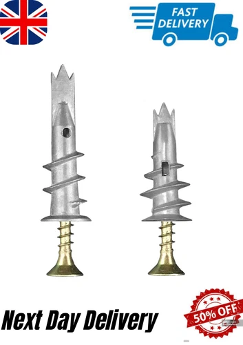 100 Pcs Plasterboard Fixings Self-Drill Cavity Wall Speed Anchor Plugs & Screws