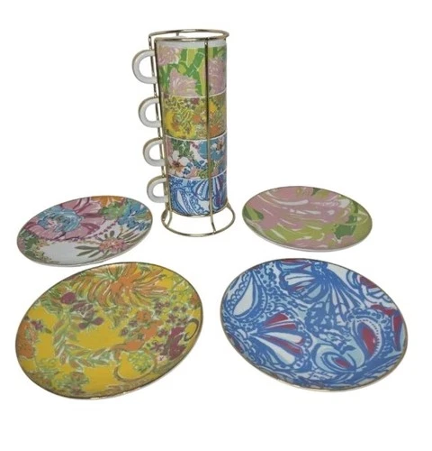 Lilly Pulitzer For Target 7" Dessert Plates Matching Expresso Cups With Rack