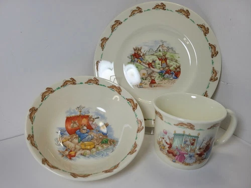 Royal Doulton Bunnykins 3 Piece Child Set Plate-Bowl-Cup Orig Box 1989 Vintage