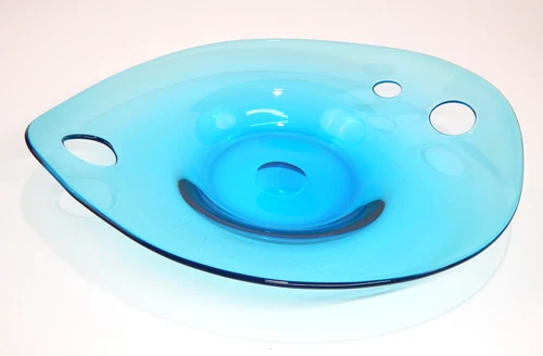 MIKASA Handmade Glass Wave 13x16 Turquoise Glass Plate Centerpiece Bowl w/Pontil