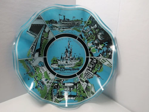 Vintage Walt Disney World 1970's Glass Candy Dish Ashtray Plate Bowl EUC