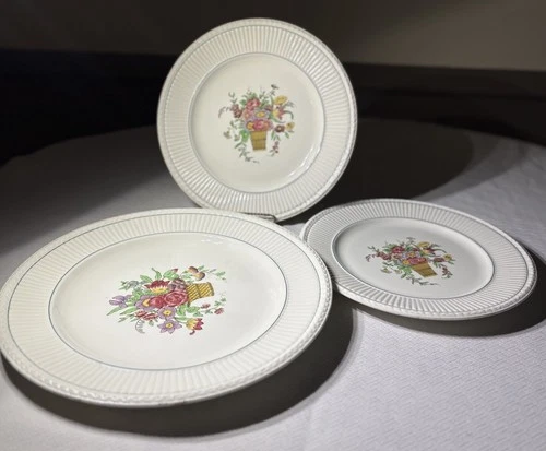 Wedgwood Belmar Set 3: 2 Dinner Plates 10” + 13” Platter Floral Basket 1917