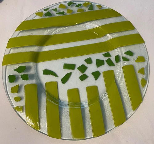 Vintage Fused Glass Decorative 14” Plate serving Tray Mosaic retro Green platter