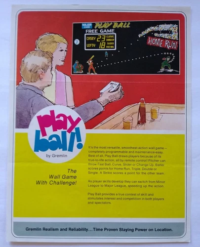 Play Ball Baseball Arcade Flyer Original Wall Game 1972 Retro Art Gremlin