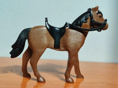 PLAYMOBIL FIGURE BROWN HORSE BLACK SADDLE COWBOY WESTERN MEDIEVAL ROMAN GAUL