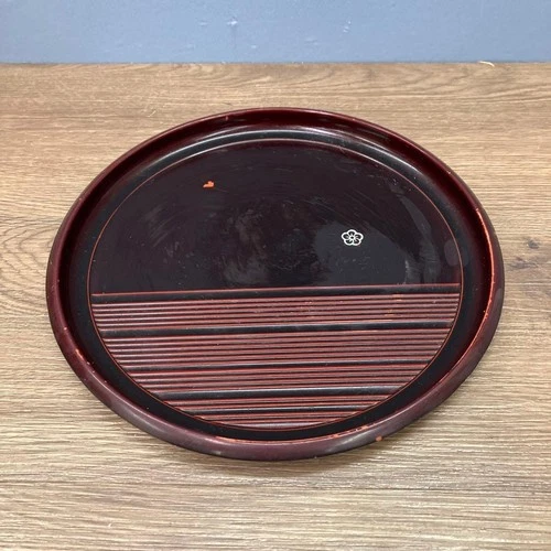 Japanese Modern Lacquer Style Tray Red Black Plum Design Round Tray