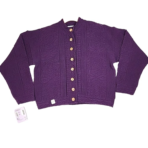 Vtg Renee Hauer Chunky Knit Cardigan Womens L Deep Plum Wood Buttons USA NWT