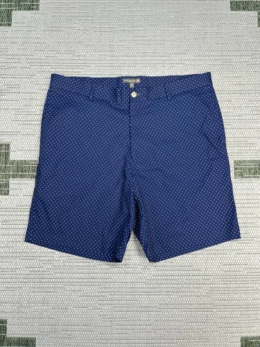 Peter Millar Crown Sport Shorts Mens 36 Blue Polka Dot Stretch Mid Rise Tennis