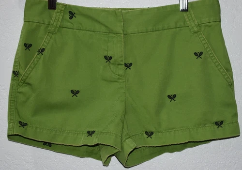 J.Crew 4 Shorts Embroidered Tennis Rackets Chino Green Classic Twill City Fit