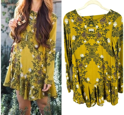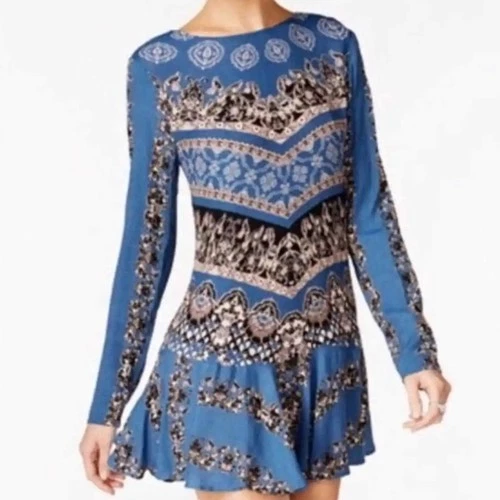 Free People Small Smooth Talker Open Back Long Sleeve Dress Tunic Boho Festival