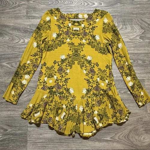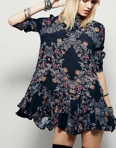 Free People Anthropologie Smooth Talker Tunic Dress S Raven Black Floral Print