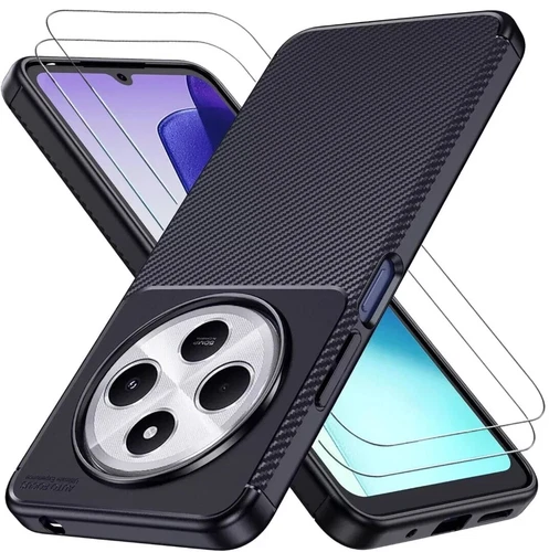 Case, For Xiaomi Poco C75 Carbon Gel Phone Cover & Glass Screen Protector