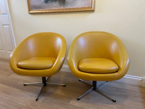 Retro Egg Pod Chair Yellow Swivel Fiberglass Shell Cashmere Upholstery Modern