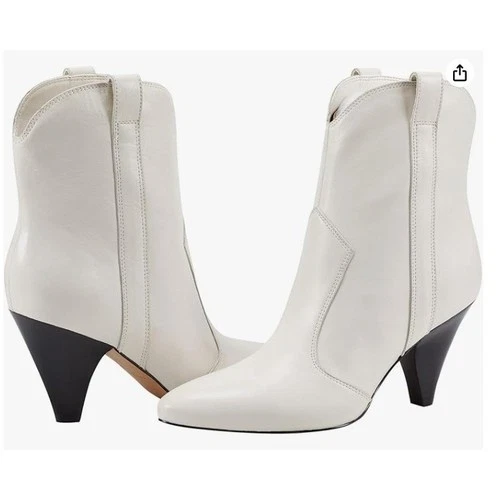 Marc Fisher LTD Women's Cream Leather Western Ankle Boots Pointed Toe 9.5M NEW