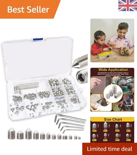 Durable Grub Screws Set of 240 - Cone Point & Hex Head for Home Repairs