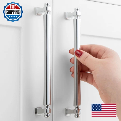 ASKANO 10 Pack 6-1/4 Inch Hole Centers Polished Chrome Cabinet Pulls Handles Kit