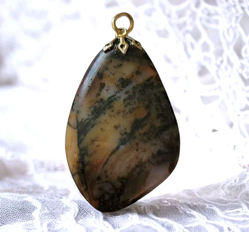 Natural Amber Striated Multi-color Agate Microcrystalline Quartz Pendant