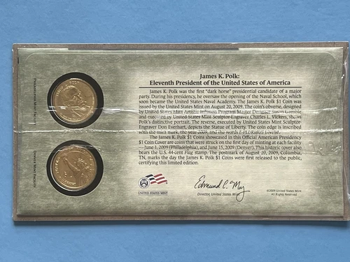 James Polk $1 First Day Mint, Postmark: 1st Day Issue 8/20/09, Columbia, TN