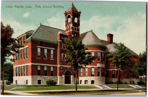 Polk School Building Cedar Rapids IA Vintage Postcard B34
