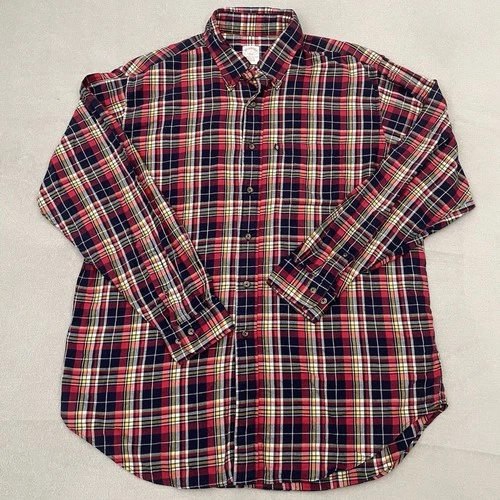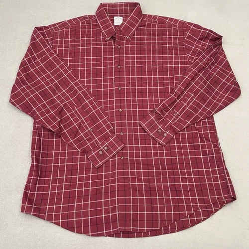 Brooks Brothers 346 Shirt Mens Large Red Regular Original Polo Plaid Long Sleeve
