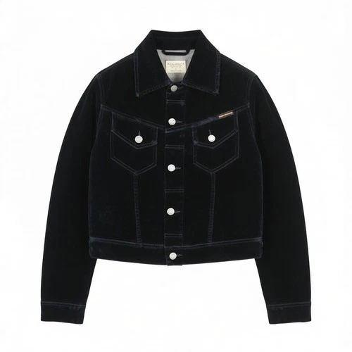NUDIE JEANS Tove Women's Jacket M Blue Velvet Polo Collar Button Sleeve *