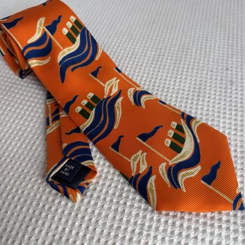 Vintage Polo by Ralph Lauren Silk Tie Colorful Orange Blue Ships Boats Hand Made