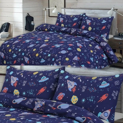 Kids Space Duvet Cover Set Polycotton Bedding w/ Pillowcases Fun Galaxy Print