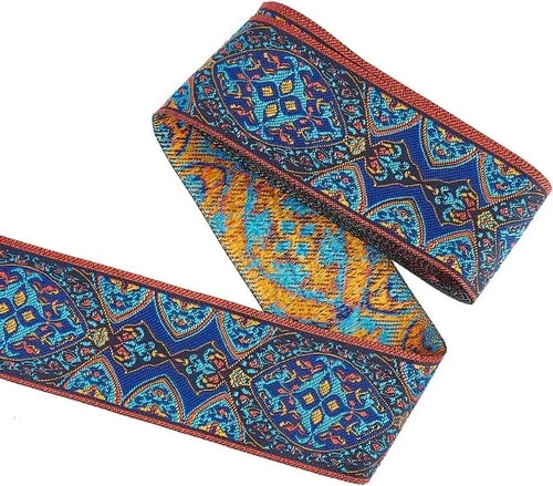 5m Jacquard Ribbon 50mm Wide Vintage Floral Embroidery Navy Polycotton Boho Trim