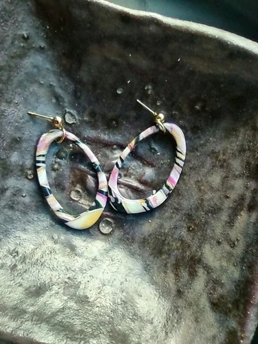 Pink Black And Gold Polymer Clay Cane Earrings