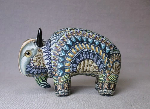 Jon Stuart Anderson Hand Made Polymer Clay 3" Bison, Face Cane Signed 2006