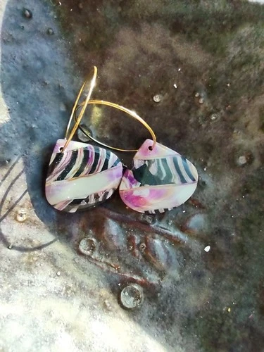 Purple Pink Black And Gold Multi Cane Large Teardrop Style Polymer Clay Earrings