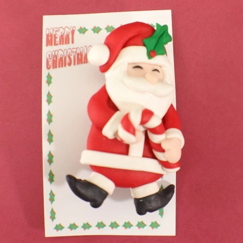 Holiday Christmas Brooch Pin Santa Holding Candy Cane Polymer Clay Handmade