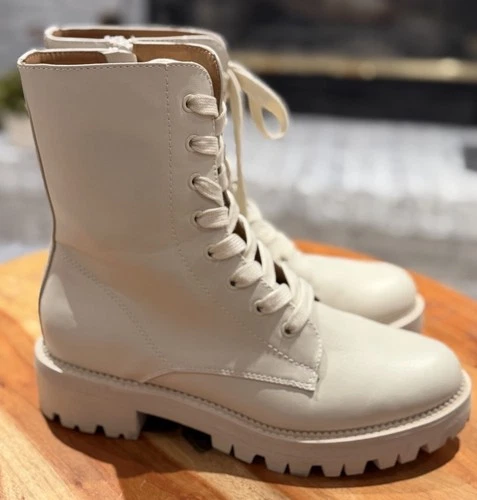 A New Day Womens Combat Boots Size 9.5 Beige Lace Up Side Zip Lug Sole