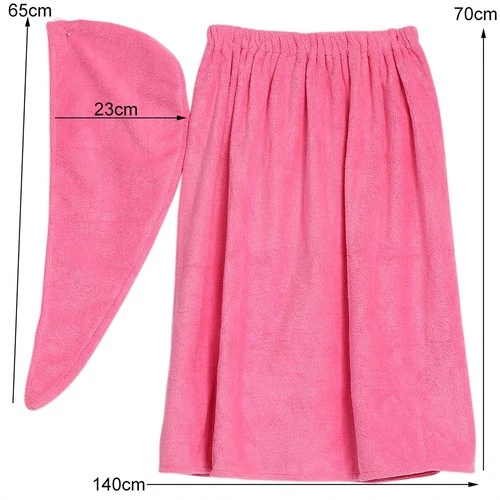 Women Soft Spa Bath Body Wrap Set Towel Bathrobe With Fast Dry Hair Drying Cap