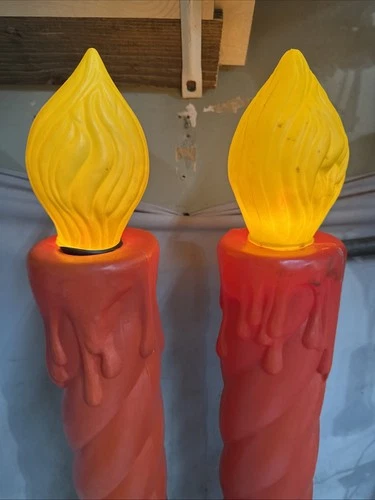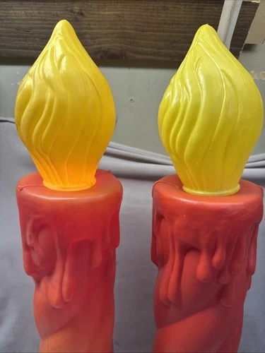 T47- Vintage 36” Union Products Set Of 2 Red Melting Candle Blow Molds. Tested