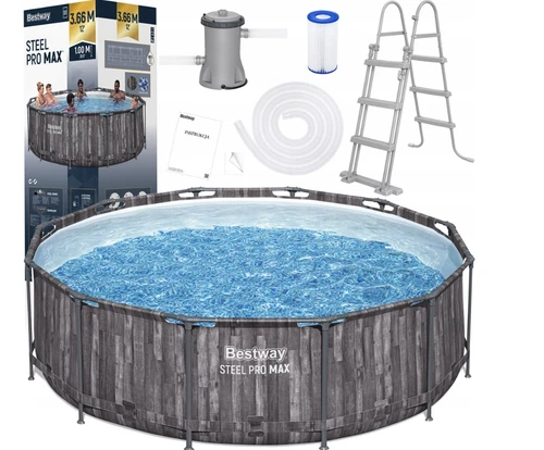 Bestway 5614X Steel Pro Max Pool Quick-Up 366 x 100 cm Gray 8in1 Pump + Cover