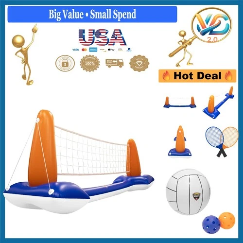 Inflatable Pool Net 2-in-1 Pickleball Volleyball Set for Water & Land