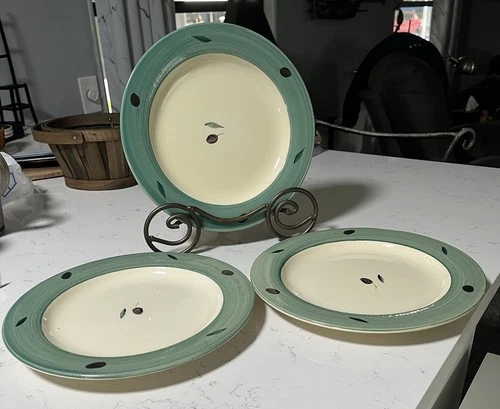 Poole Pottery Fresco Green Set Of 3 Dinner Plates 10.5. Rare Great Condition