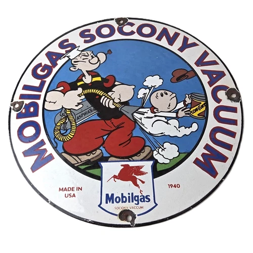 Vintage Mobil Sign - Pegasus Mobilgas Popeye Gas Oil Pump Service Porcelain Sign