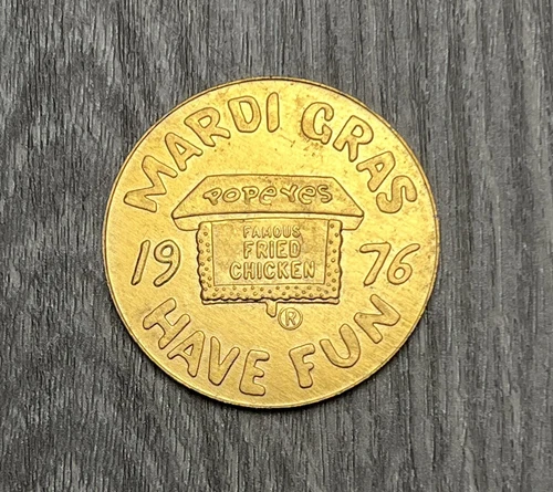 Vintage 1976 Popeyes Mardi Gras Trade Token Coin Have Fun 1/4 Chicken Free