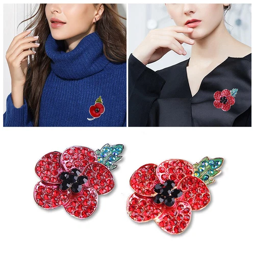 Crystal Enamel Pin Brooch Broach Christmas Decor Props Poppies Badges R L