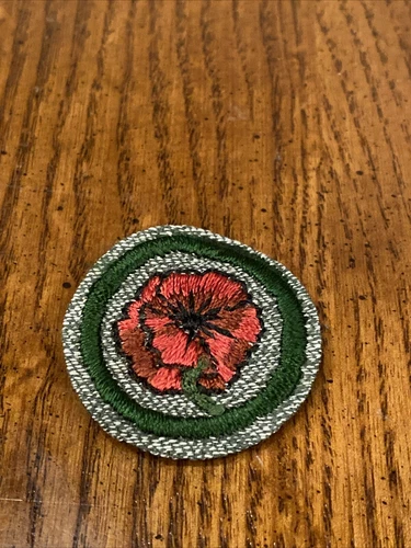 RARE Vtg 1928-1938 Girl Scout GARDEN FLOWER MERIT BADGE PATCH Red Pink Poppy
