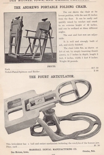 1905 Andrews Portable Folding Dental Chair Marshall Dental Mfg Co Print Ad